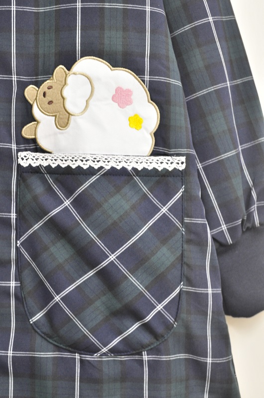 前ボタンタイプで暖かく着られる前後ろはボア加工袖は中綿入り、保育士さんや介護士さん歯科衛生士さんなどに人気の裏ボアひつじスモックです♪