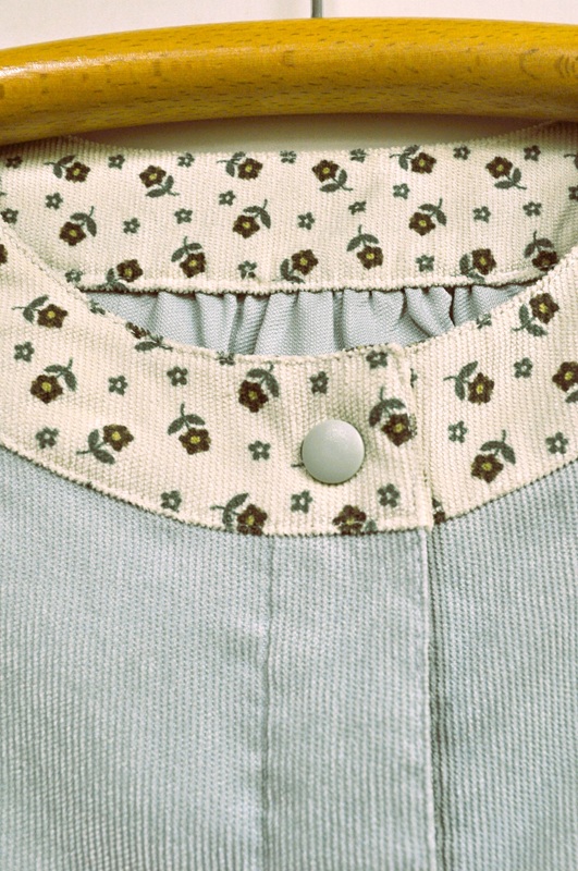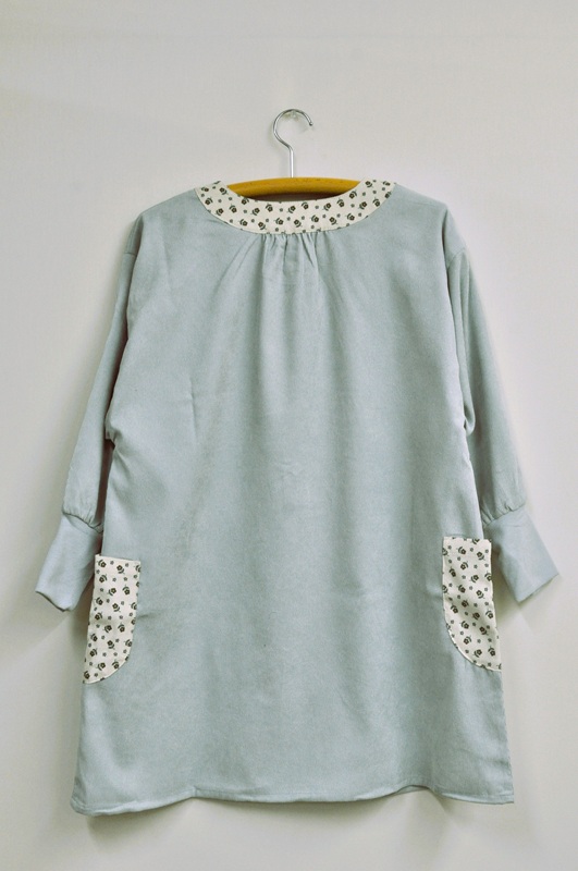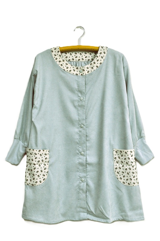 スナップタイプの前ボタン袖リブ使用、保育士さんや介護士さん歯科衛生士さんなどに人気のレトロフラワースモックです♪