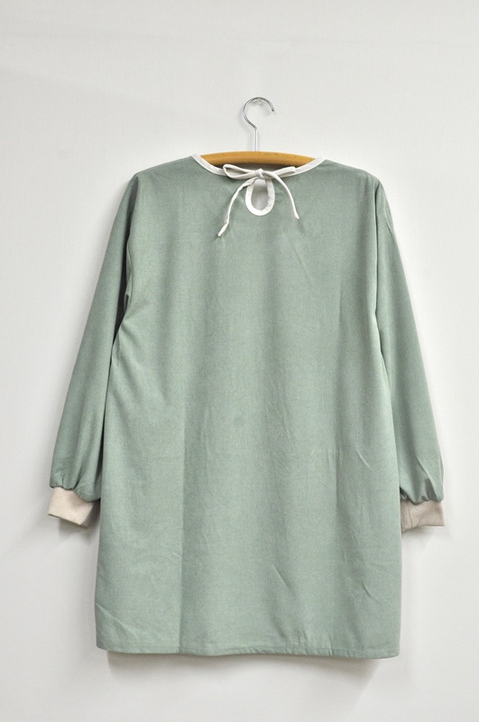 後ろリボンかぶりタイプ、袖リブ加工で保育士さんや介護士さん歯科衛生士さんなどに人気のうしろリボンチュニックです♪