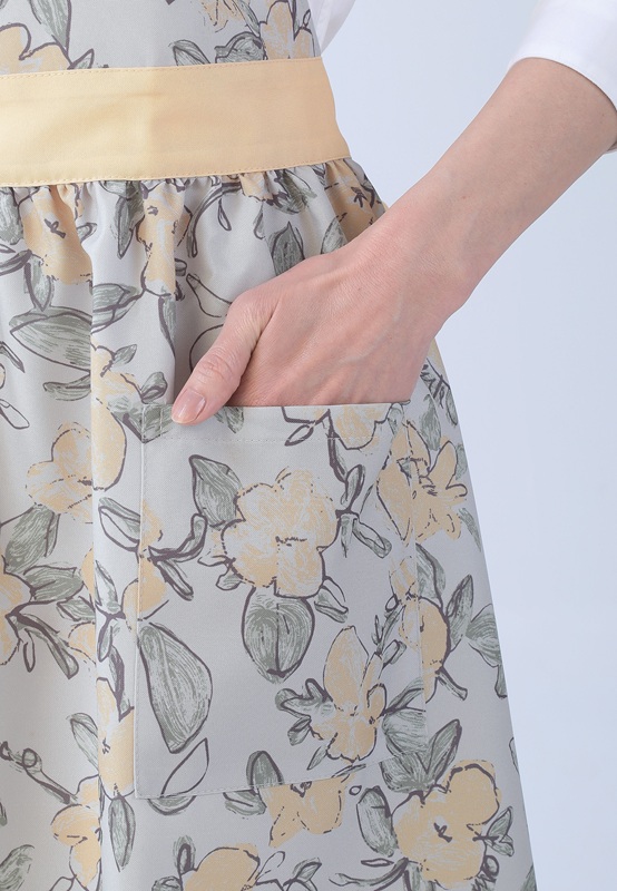 ウエストにはたっぷりギャザーが入っており、ふんわりシルエットが魅力、肩紐は背中側で交差したボタン止めは2段階に調整可能です♪