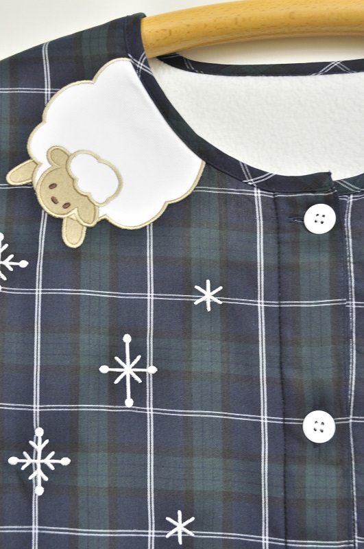 前ボタンタイプで暖かく着られる前後ろはボア加工袖は中綿入り、保育士さんや介護士さん歯科衛生士さんなどに人気の裏ボアひつじスモックです♪