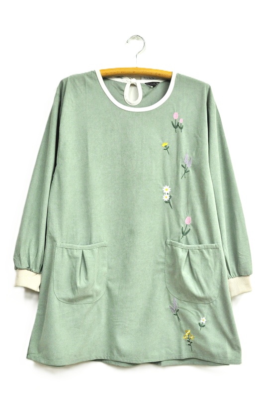後ろリボンかぶりタイプ、袖リブ加工で保育士さんや介護士さん歯科衛生士さんなどに人気のうしろリボンチュニックです♪