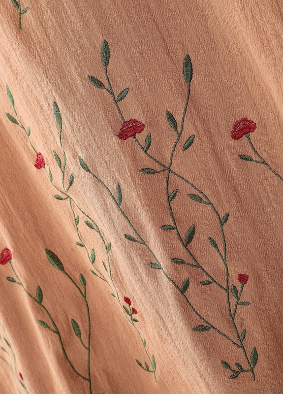 花刺繍がワンポイント♪後ろ1つボタン優しい風合いの綿ワッシャー花刺繍チュニックです♪